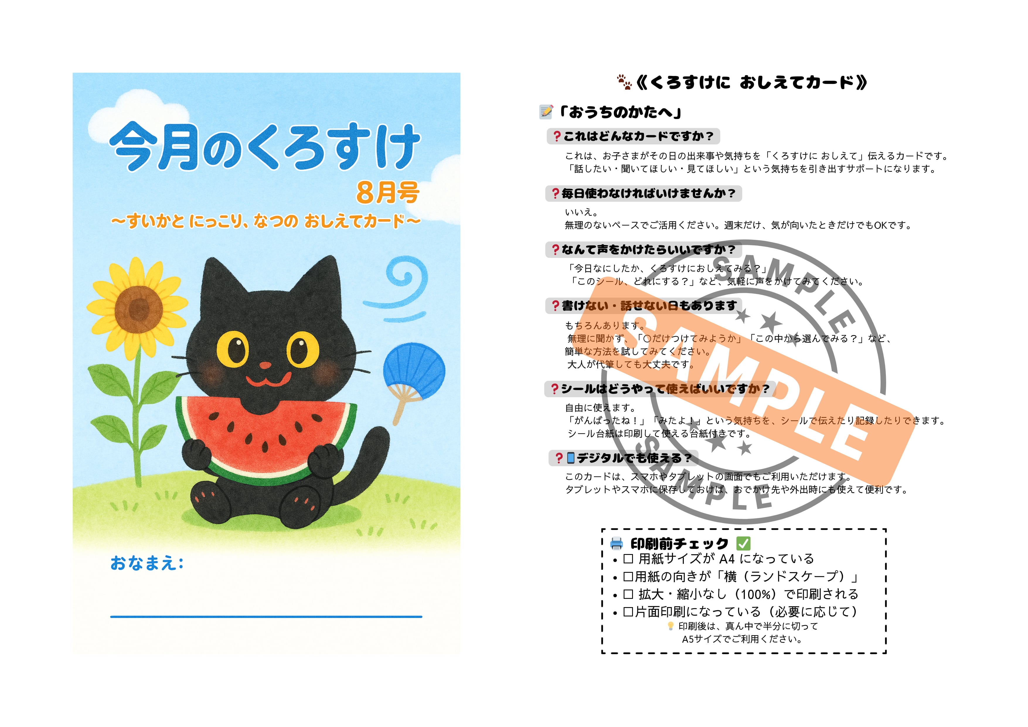 くろすけにおしえてカード【8月号/おためし版】|親子でたのしむ1日1枚カード/PDF