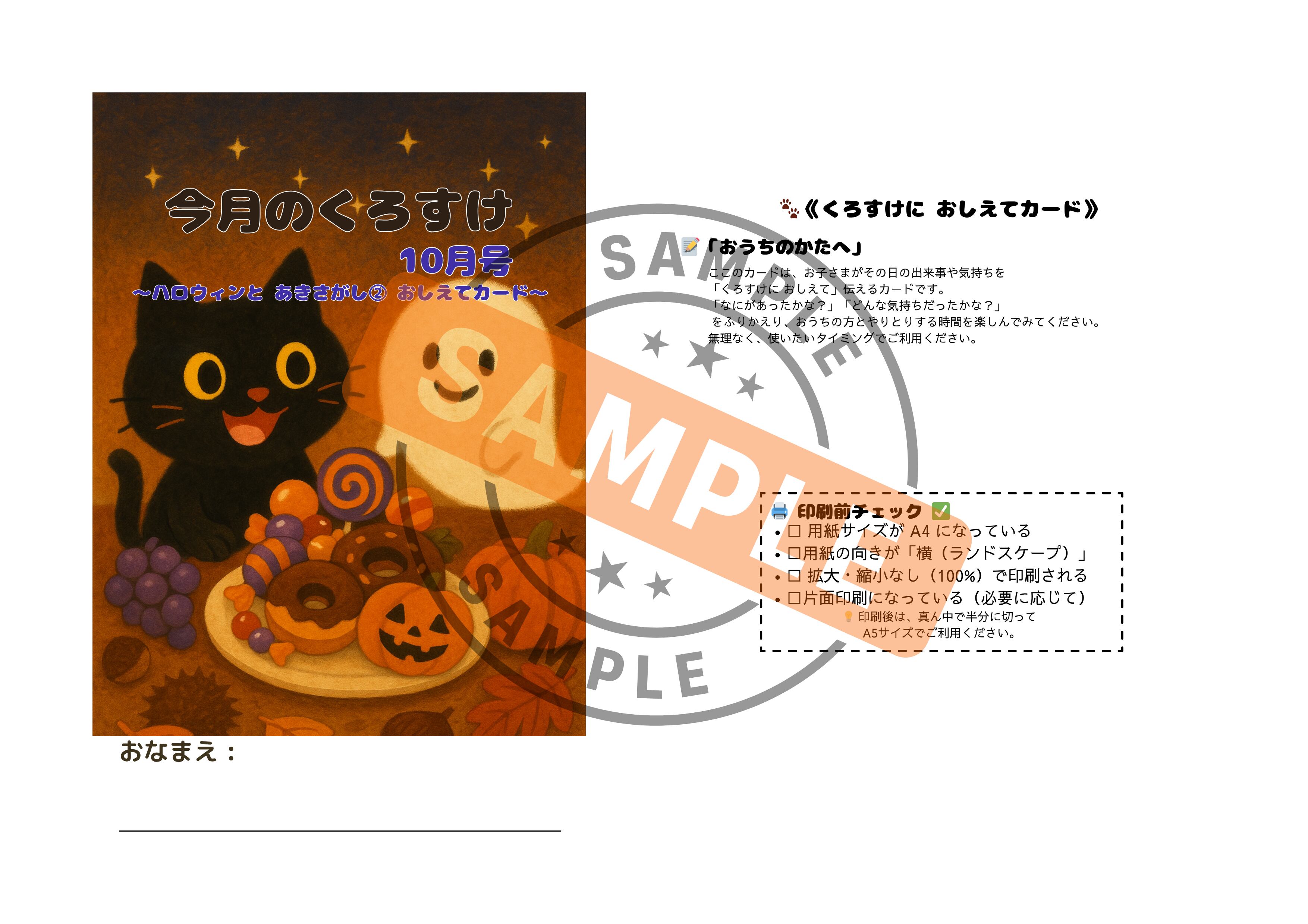 くろすけにおしえてカード【秋セット】 9月号+10月号+限定特典つき|親子で楽しむ1日1枚ワーク/PDFダウンロード販売